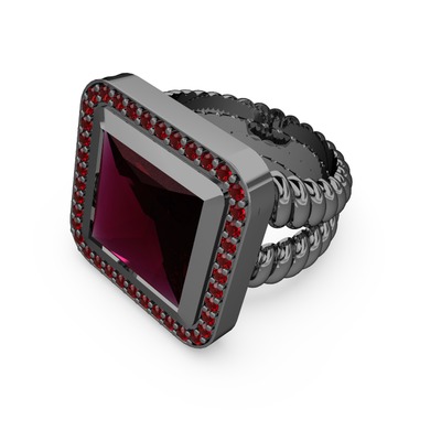 Rodolit garnet ve garnet 925 ayar siyah rodyum kaplama gümüş yüzük