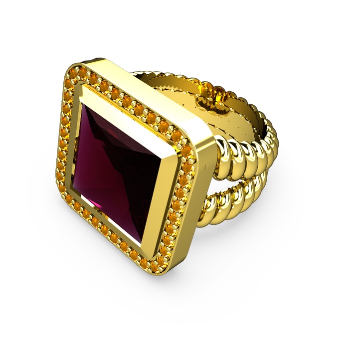 Rodolit garnet ve sitrin 8 ayar altın yüzük