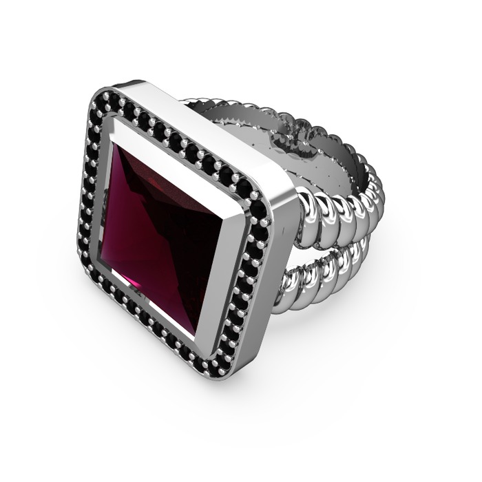 Rodolit garnet ve siyah zirkon 8 ayar beyaz altın yüzük