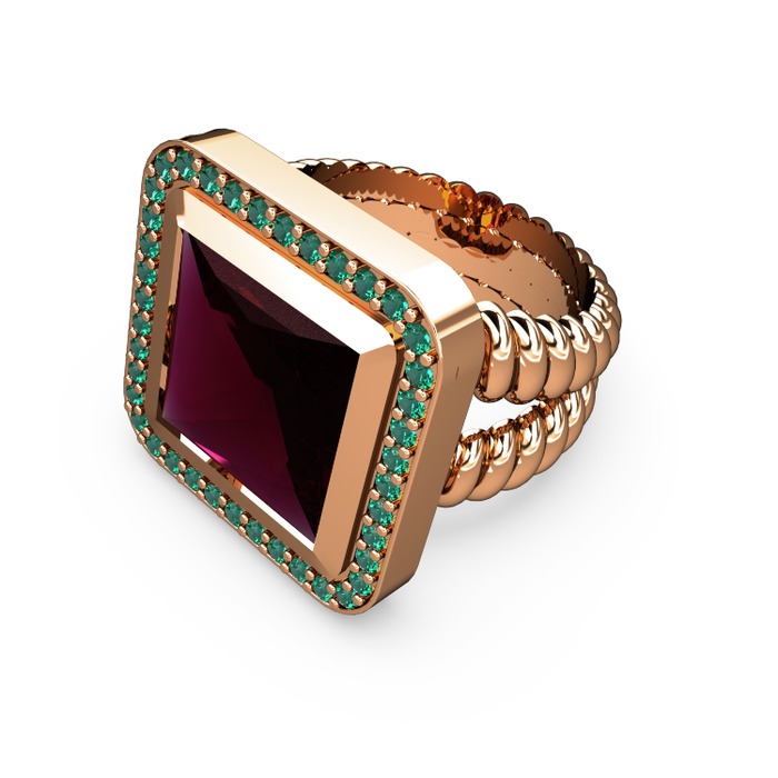 Rodolit garnet ve yeşil kuvars 18 ayar rose altın yüzük