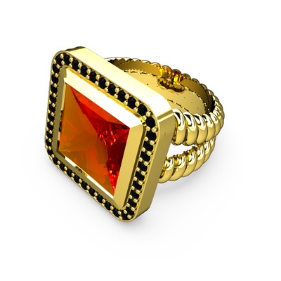 Sitrin ve siyah zirkon 14 ayar altın yüzük