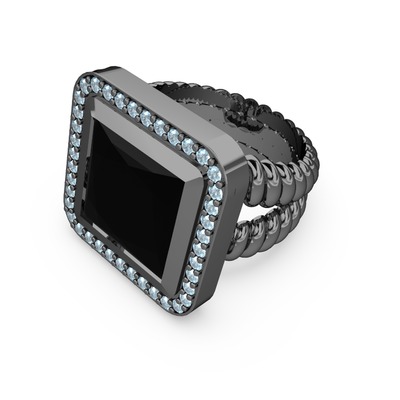 Siyah zirkon ve akuamarin 925 ayar siyah rodyum kaplama gümüş yüzük