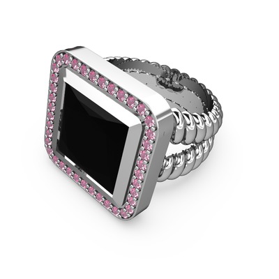 Siyah zirkon ve pembe kuvars 18 ayar beyaz altın yüzük