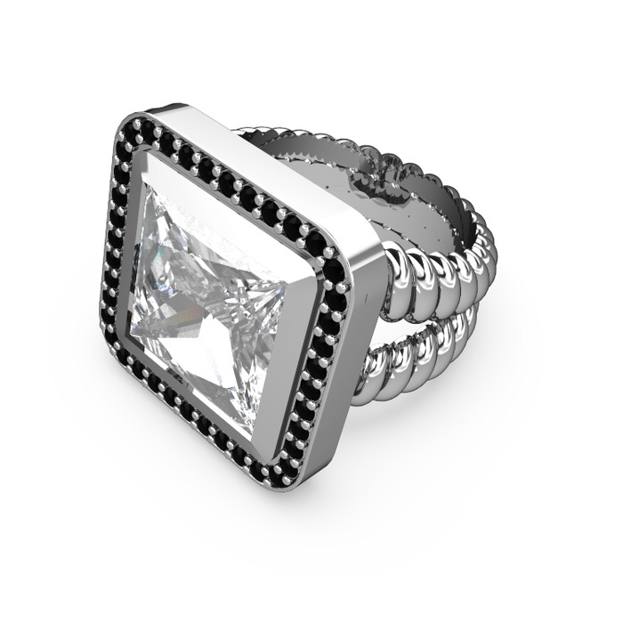 Swarovski ve siyah zirkon 8 ayar beyaz altın yüzük