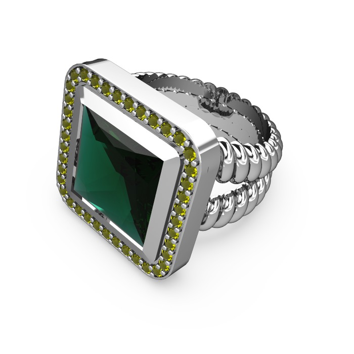 Yeşil kuvars ve peridot 14 ayar beyaz altın yüzük