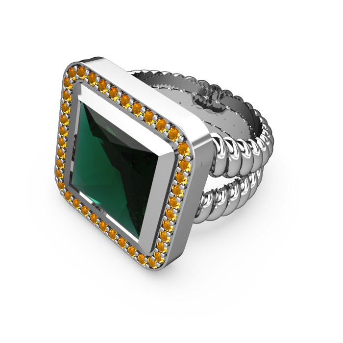 Yeşil kuvars ve sitrin 18 ayar beyaz altın yüzük