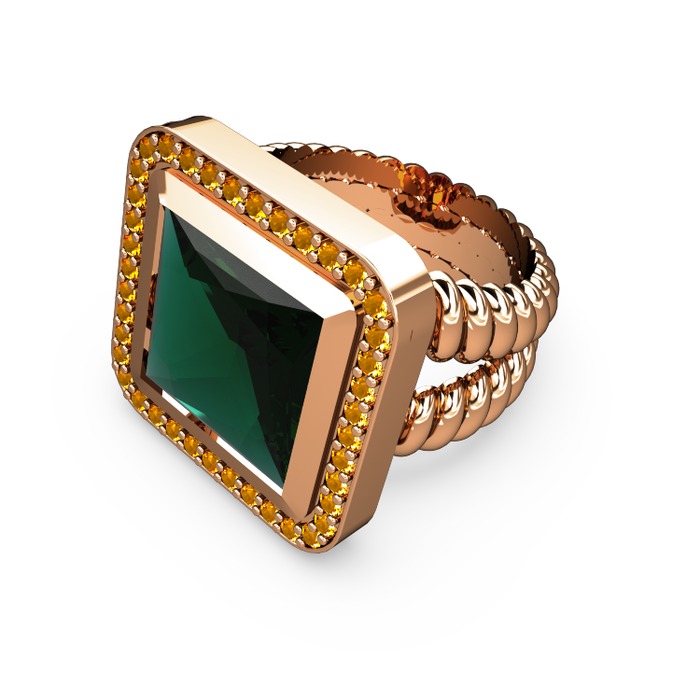 Yeşil kuvars ve sitrin 925 ayar rose altın kaplama gümüş yüzük