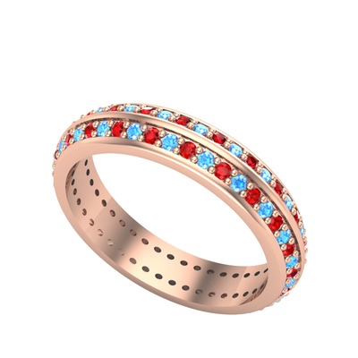 Akuamarin ve garnet 8 ayar rose altın yüzük