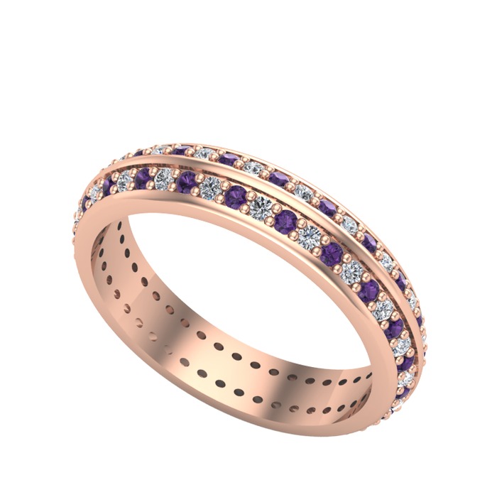 Ametist ve beyaz zirkon 14 ayar rose altın yüzük