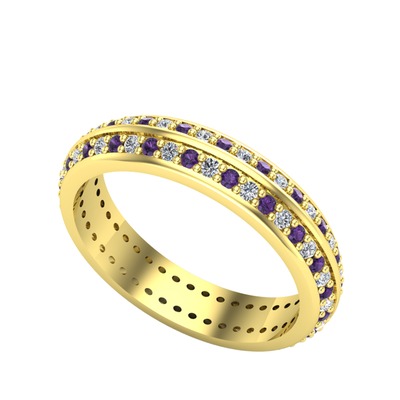 Ametist ve beyaz zirkon 925 ayar altın kaplama gümüş yüzük