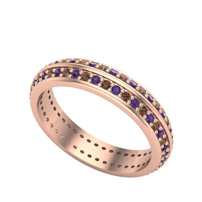 Ametist ve dumanlı kuvars 925 ayar rose altın kaplama gümüş yüzük