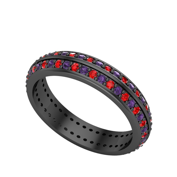 Ametist ve garnet 925 ayar siyah rodyum kaplama gümüş yüzük