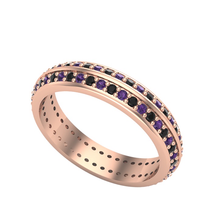 Ametist ve siyah zirkon 18 ayar rose altın yüzük