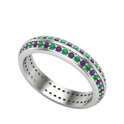Ametist ve yeşil kuvars 14 ayar beyaz altın yüzük