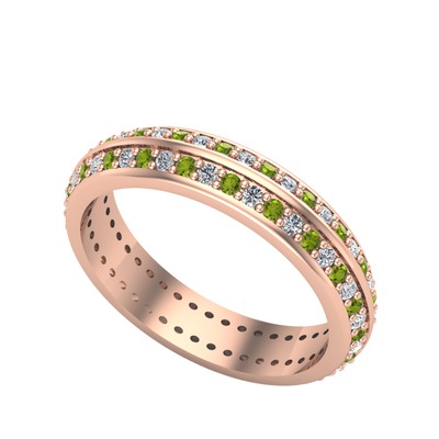Beyaz zirkon ve peridot 14 ayar rose altın yüzük