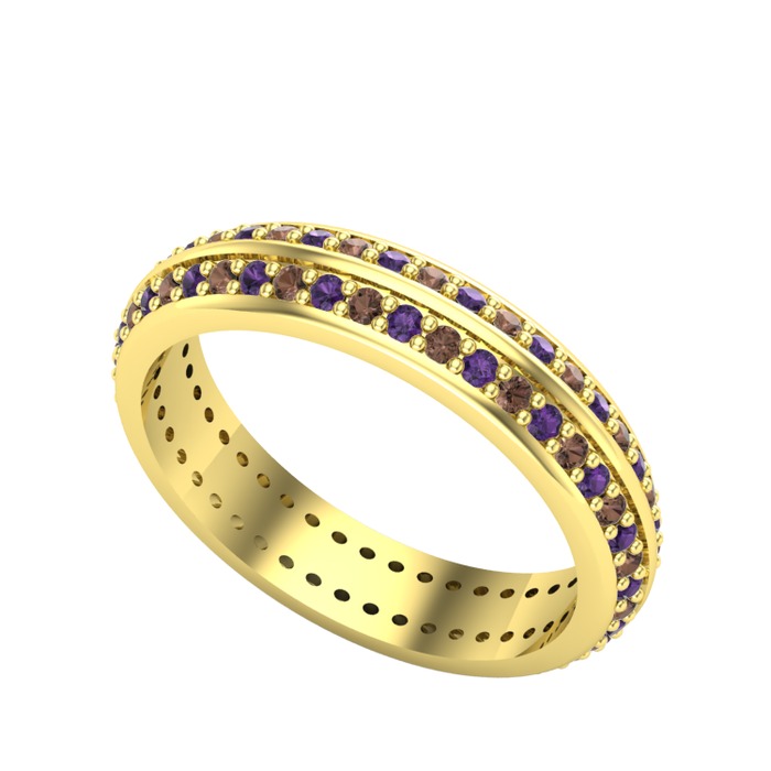 Dumanlı kuvars ve ametist 8 ayar altın yüzük