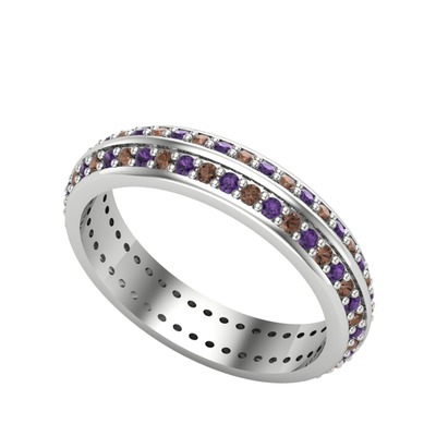 Dumanlı kuvars ve ametist 8 ayar beyaz altın yüzük