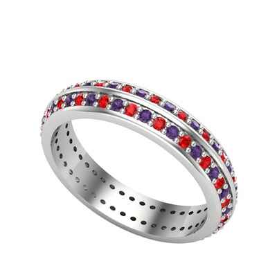 Garnet ve ametist 14 ayar beyaz altın yüzük