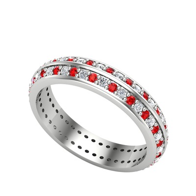 Garnet ve pırlanta 14 ayar beyaz altın yüzük (0.484 karat)