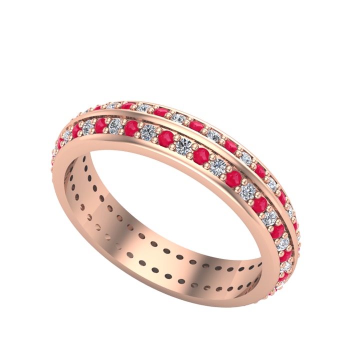 Kök yakut ve beyaz zirkon 925 ayar rose altın kaplama gümüş yüzük