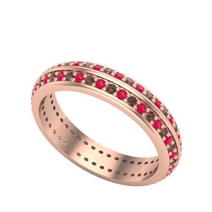Kök yakut ve dumanlı kuvars 14 ayar rose altın yüzük