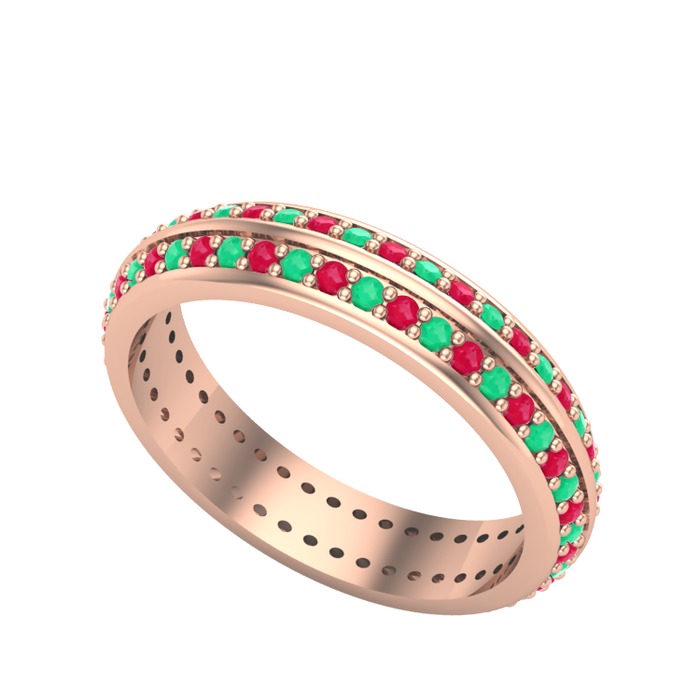 Kök yakut ve kök zümrüt 18 ayar rose altın yüzük