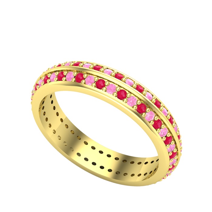 Kök yakut ve pembe kuvars 18 ayar altın yüzük