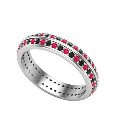 Kök yakut ve siyah zirkon 18 ayar beyaz altın yüzük