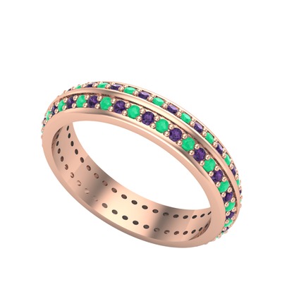 Kök zümrüt ve ametist 14 ayar rose altın yüzük