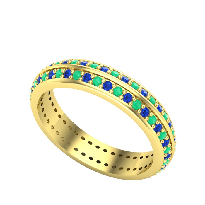 Kök zümrüt ve lab safir 925 ayar altın kaplama gümüş yüzük