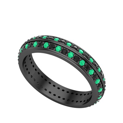 Kök zümrüt ve siyah zirkon 925 ayar siyah rodyum kaplama gümüş yüzük