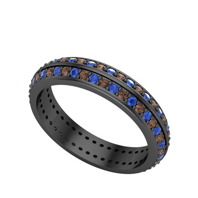 Lab safir ve dumanlı kuvars 925 ayar siyah rodyum kaplama gümüş yüzük