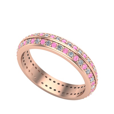 Pembe kuvars ve beyaz zirkon 8 ayar rose altın yüzük
