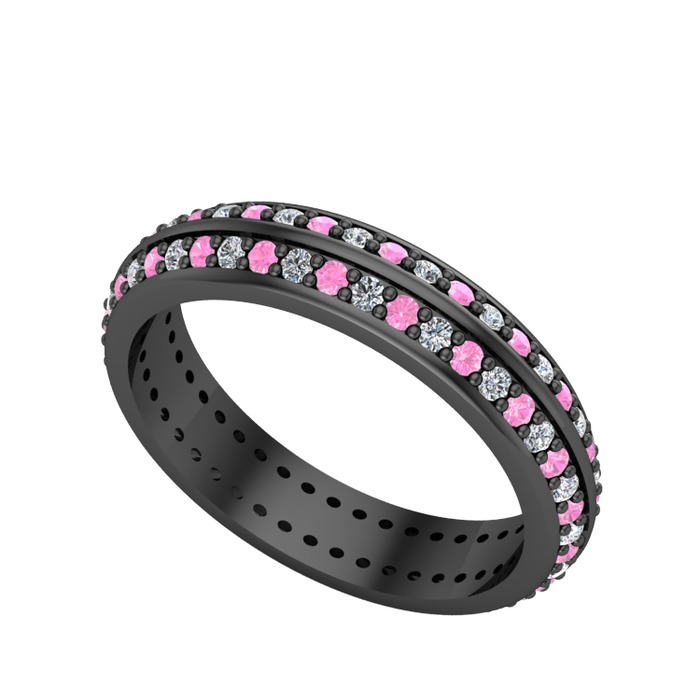Pembe kuvars ve beyaz zirkon 925 ayar siyah rodyum kaplama gümüş yüzük