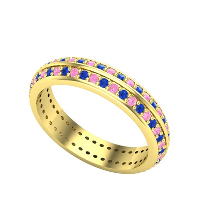 Pembe kuvars ve lab safir 8 ayar altın yüzük