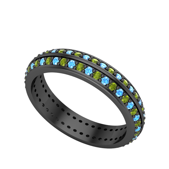 Peridot ve akuamarin 925 ayar siyah rodyum kaplama gümüş yüzük