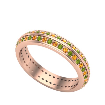 Peridot ve sitrin 14 ayar rose altın yüzük