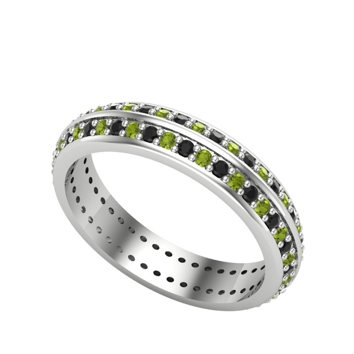 Peridot ve siyah zirkon 18 ayar beyaz altın yüzük