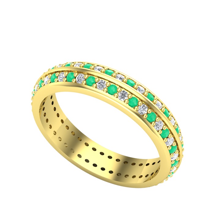Pırlanta ve kök zümrüt 925 ayar altın kaplama gümüş yüzük (0.484 karat)