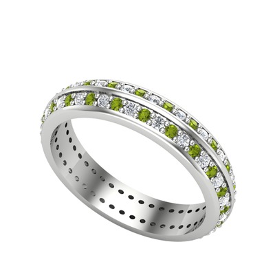 Pırlanta ve peridot 18 ayar beyaz altın yüzük (0.484 karat)