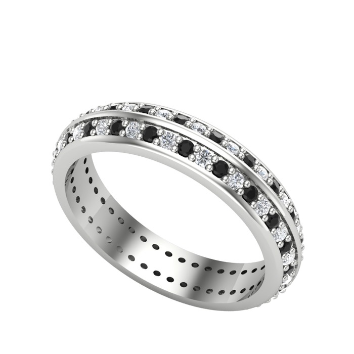 Pırlanta ve siyah zirkon 18 ayar beyaz altın yüzük (0.484 karat)