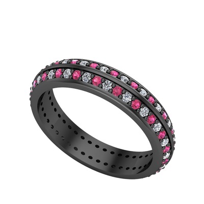 Rodolit garnet ve beyaz zirkon 925 ayar siyah rodyum kaplama gümüş yüzük