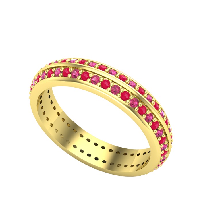 Rodolit garnet ve kök yakut 925 ayar altın kaplama gümüş yüzük