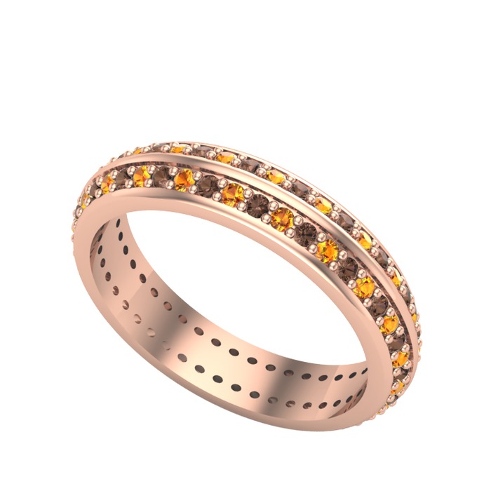 Sitrin ve dumanlı kuvars 18 ayar rose altın yüzük