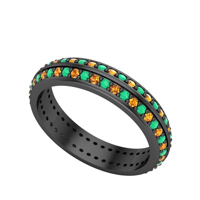 Sitrin ve kök zümrüt 925 ayar siyah rodyum kaplama gümüş yüzük