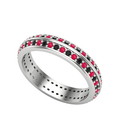 Siyah zirkon ve kök yakut 8 ayar beyaz altın yüzük