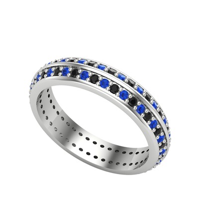 Siyah zirkon ve lab safir 18 ayar beyaz altın yüzük