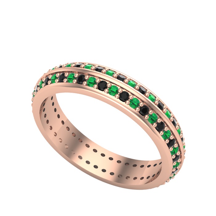 Siyah zirkon ve yeşil kuvars 18 ayar rose altın yüzük