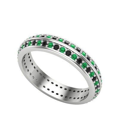 Siyah zirkon ve yeşil kuvars 8 ayar beyaz altın yüzük
