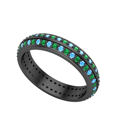 Yeşil kuvars ve akuamarin 925 ayar siyah rodyum kaplama gümüş yüzük